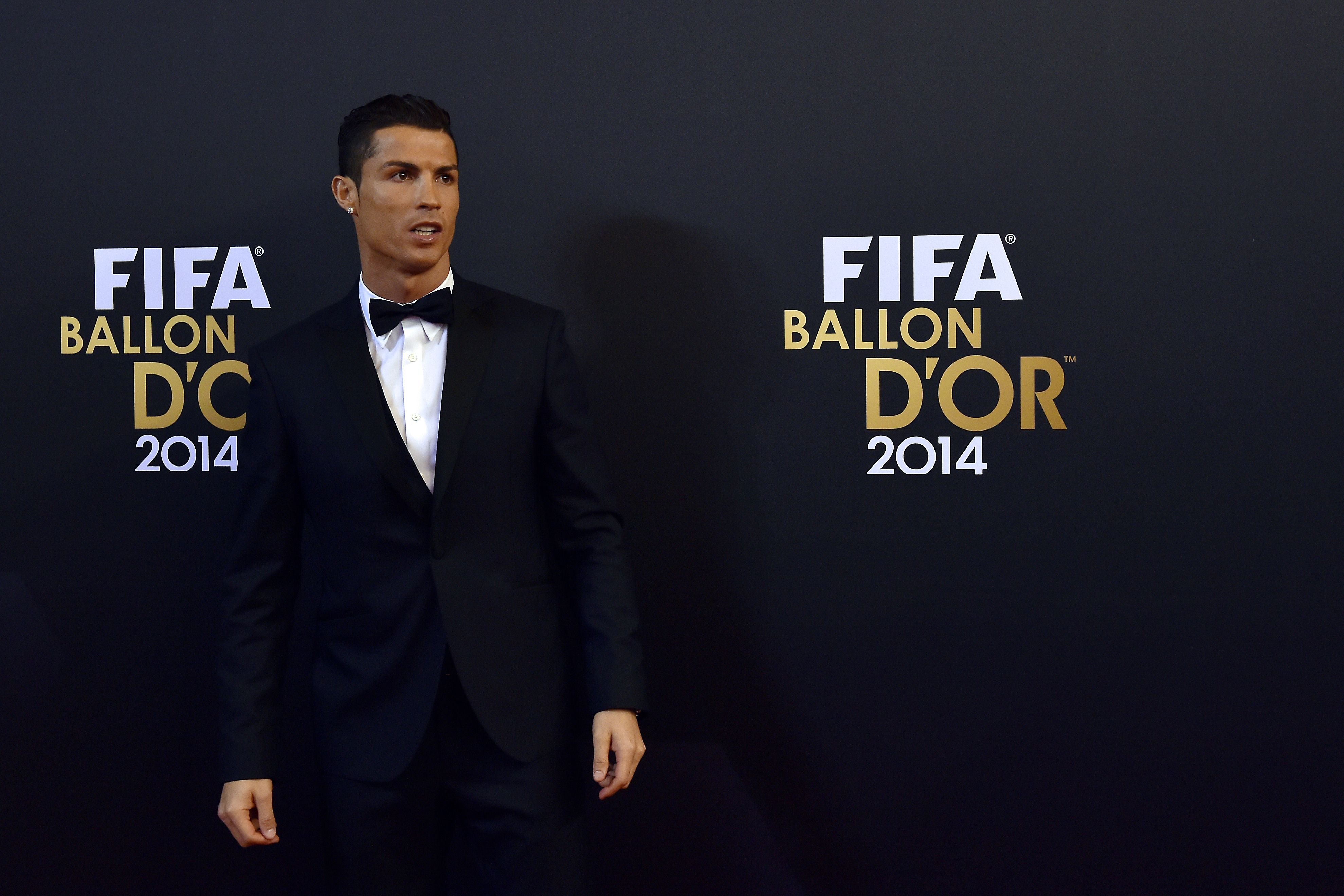 Portugal and Real Madrid superstar Cristiano Ronaldo accepts his Player of the Year Award at the FIFA Ballon d'Or Gala 2014 on 12 January 2015.